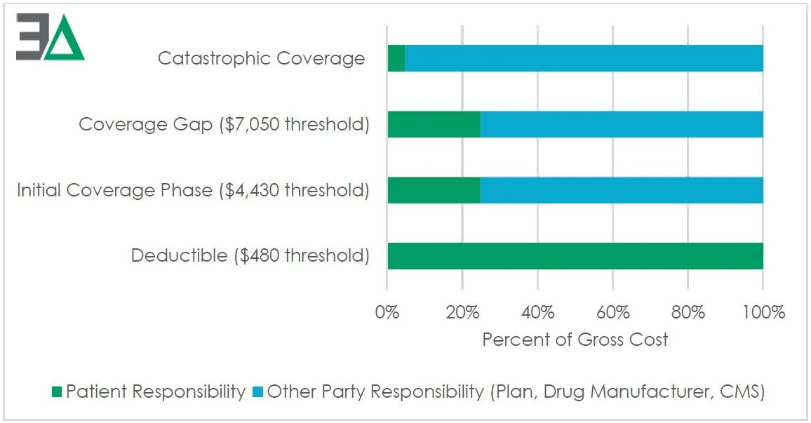 Figure 1: Medicare Part D standard plan parameters, patient cost sharing liability for 2022